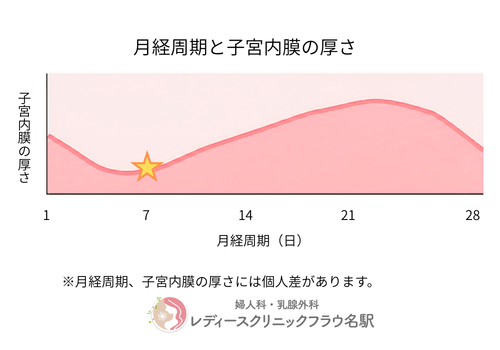 子宮内膜が薄くなったタイミングで、再度婦人科エコー検査で子宮内膜の状態を確認します。
